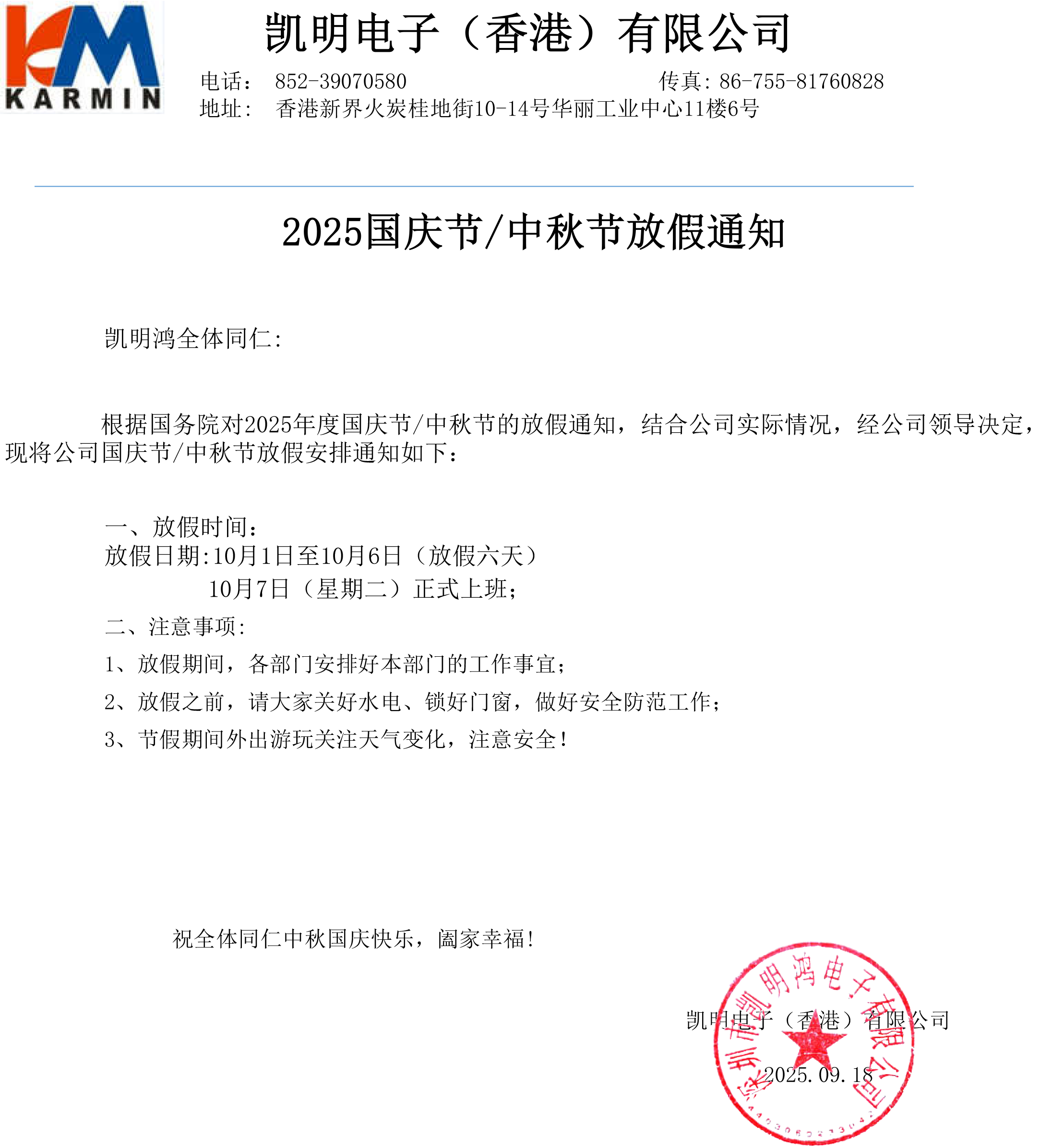 2025國慶節(jié)/中秋節(jié)放假通知